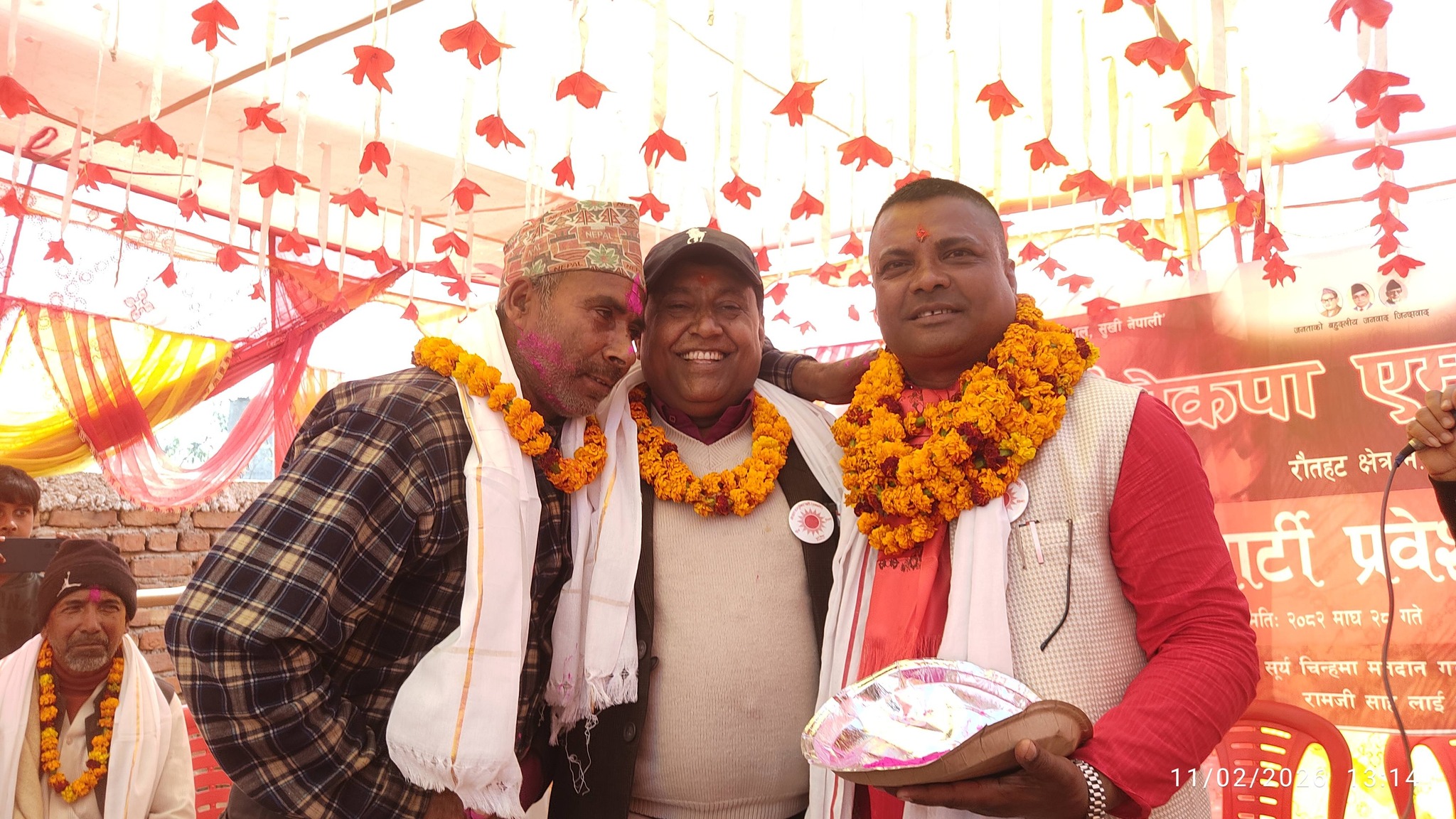 रौतहटको बृन्दावन नगरपालिका–७ स्थित सखुवा धमौरामा बुधबार आयोजित एक विशेष कार्यक्रममा विभिन्न राजनीतिक दल परित्याग गर्दै करिब पाँच सयभन्दा बढी नेता–कार्यकर्ता नेकपा एमालेमा प्रवेश गरेका छन् । स्थानीय तहमा एमालेप्रति बढ्दो आकर्षण देखिएको भन्दै आयोजित उक्त कार्यक्रमले क्षेत्र नं. ४ को राजनीतिक माहोललाई थप तातो बनाएको छ ।